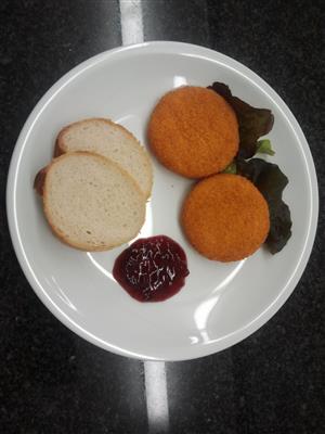 Käse in einer Semmelbröselhülle , dazu Salat vom Buffet | |
