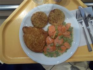 (enthält Schweinefleisch) mit selbstgemachtem Kartoffelsalat und Nachtisch.