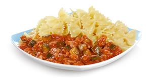 Hauptgericht - Tomatensauce mit Thunfisch und Zucchini, dazu Farfalle Nudeln