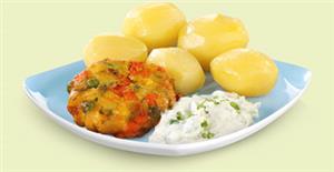 Vegetarisch - Gemüsefrikadelle mit Kartoffeln und Kräuterdip (vegetarisch)