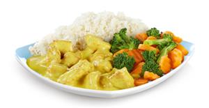 Hauptgericht - Hähnchencurry mit Broccoli-Möhrengemüse und Reis