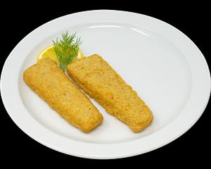Knusperfisch( Alaska-Seelachsfilet im Backteig),mit Kartoffel-Spinatauflauf ( überbacken mit Käse)